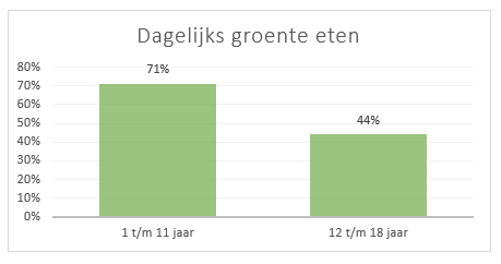 Uit onderzoek van de GGD blijkt dat het merendeel van de kinderen en jongeren in Valkenswaard zich gezond voelt! Mooi is dat ruim twee derde van de jongeren sport bij een sportclub of sportschool en 85% van de jongeren sport wekelijks. Toch voldoet ruim driekwart van de jongeren tussen de 12 en 18 jaar niet aan de beweegrichtlijn. Van de kinderen van 4 tot 12 jaar voldoet ongeveer de helft aan de beweegrichtlijn. Het percentage kinderen van 1 tot 11 jaar dat dagelijks groente eet was 71% in 2017. Van de jongeren van 12 tot 18 jaar eet maar 44% dagelijks groente. Ook het eten van fruit daalt bij het stijgen van de leeftijd. Van de 1 tot 11 jarige eet 82% dagelijks fruit. Bij de 12 tot 18 jarige is dit gedaald naar 76%.