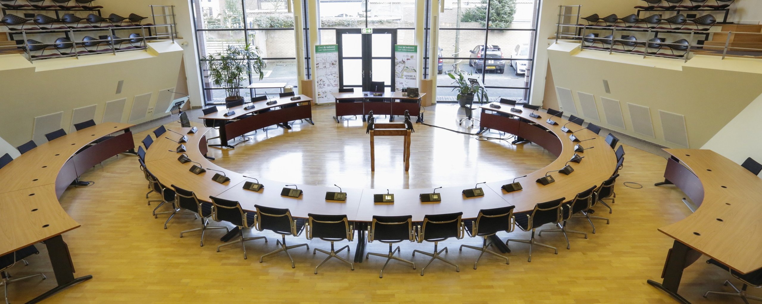 Gemeenteraadsleden hebben een vaste plek in de raadzaal. Wilt u weten welk raadslid waar zit? Dit kunt u op de plattegrond zien.