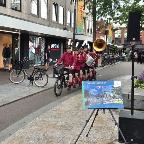 Na een kort dankwoord was het tijd voor de prijsuitreiking! Presentator Michael Penders nodigde centrummanager Rispa Boot uit op het podium. Zij lichtte namens alle ondernemers de succesvolle winactie toe. In augustus zijn er elke dag 10 winnaars bekend gemaakt en in totaal werden er maar liefst ruim 160 prijzen uitgereikt. Tijdens het event werden de vijf hoofdprijzen feestelijk bekend gemaakt. Dat waren: een elektrische fiets van E-bikes en Scooterhuis Cuijten, een waardebon voor raamdecoratie van Kijk op Gordijnen, een reischeque van Travel XL Alfa Reizen, een dinerbon voor Bij Jantje en een Kodak digitale onderwatercamera van Foto Video Valkenswaard. De overige activiteiten werden ingeluid door een fietsorkest, dat de rest van de middag in het centrum te vinden was.